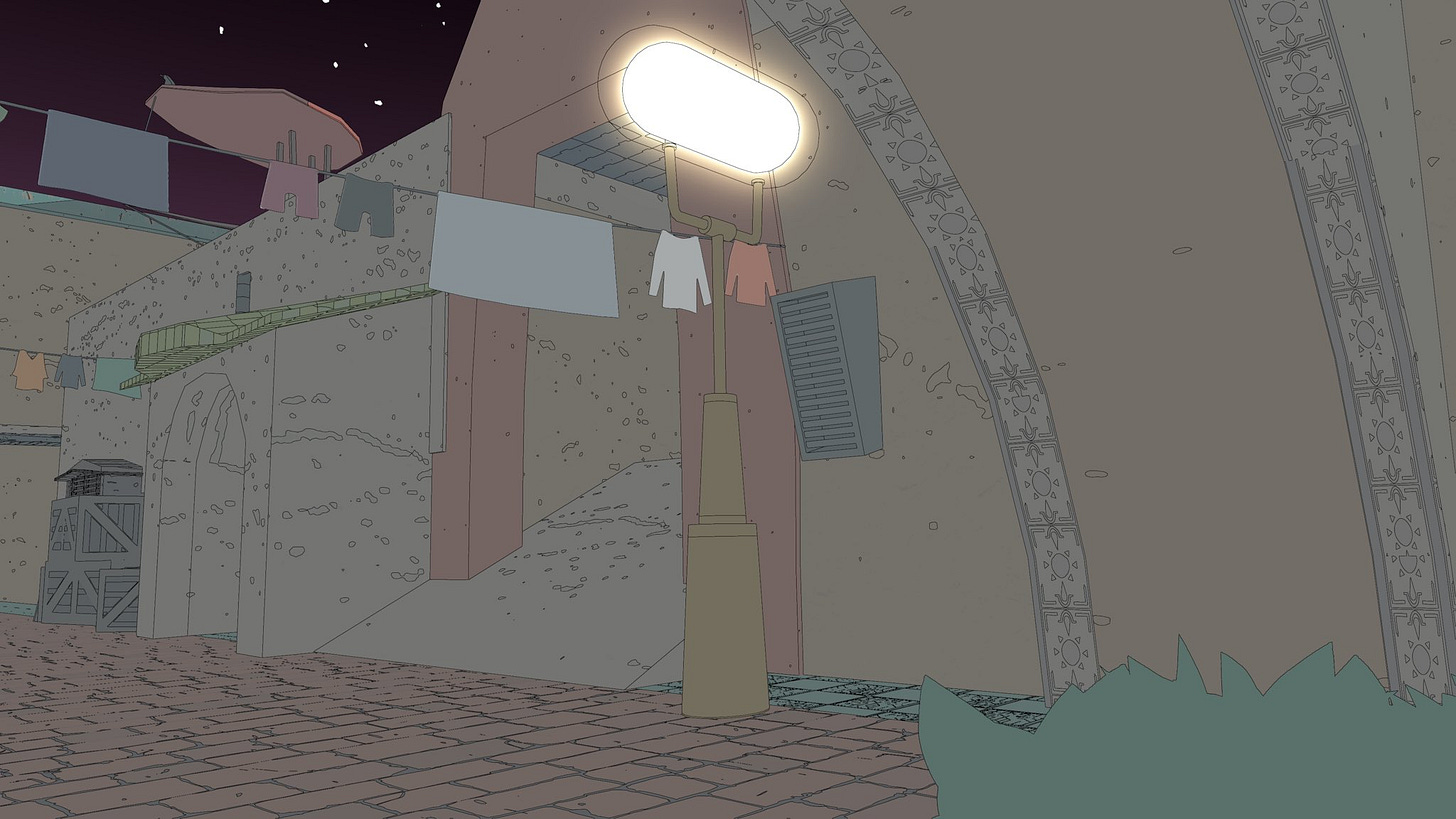 I started to think about why I find the architecture in indie games so enjoyable and why architecture in AAA games might as well be a blank rectangular prism. Indie games are often crafted by a small team of deeply passionate individuals that will hand craft elements of their world. Sable created vernaculars for different building programs. It creates the sense that the world is lived in and renovated over time. The best example I can think of is the way it treats the largest city Eccria’s streetscapes. There are three different lamps that look like they were installed during three different eras creating the sense that lights were built, then more were added but the original fixture was no longer desirable for one reason or another, and then it happened again.